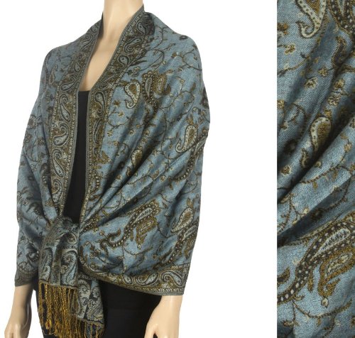 CHECK LOWEST PRICES , BEST DISCOUNT and COMPARE PARE PRICES ABOUT 70" x 28" Double Layer Jacquard Paisley Pashmina Shawl / Wrap / Stole - Steel Blue