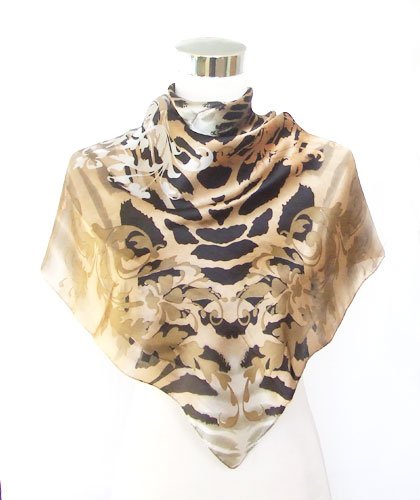 CHECK LOWEST PRICES , BEST DISCOUNT and COMPARE PARE PRICES ABOUT Satin Black/Silver Floral Print on Brown - Silk Square Scarf 35" x 35"